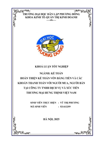 Hoàn thiện kế toán vốn bằng tiền và các khoản thanh toán với người mua, người bán tại Công ty TNHH dịch vụ đầu tư và xúc tiến thương mại Hưng Thịnh Việt Nam