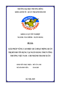Giải pháp nâng cao hiệu quả hoạt động quản trị rủi ro tín dụng tại Ngân hàng TMCP Công thương Việt Nam - Chi nhánh Thanh Xuân